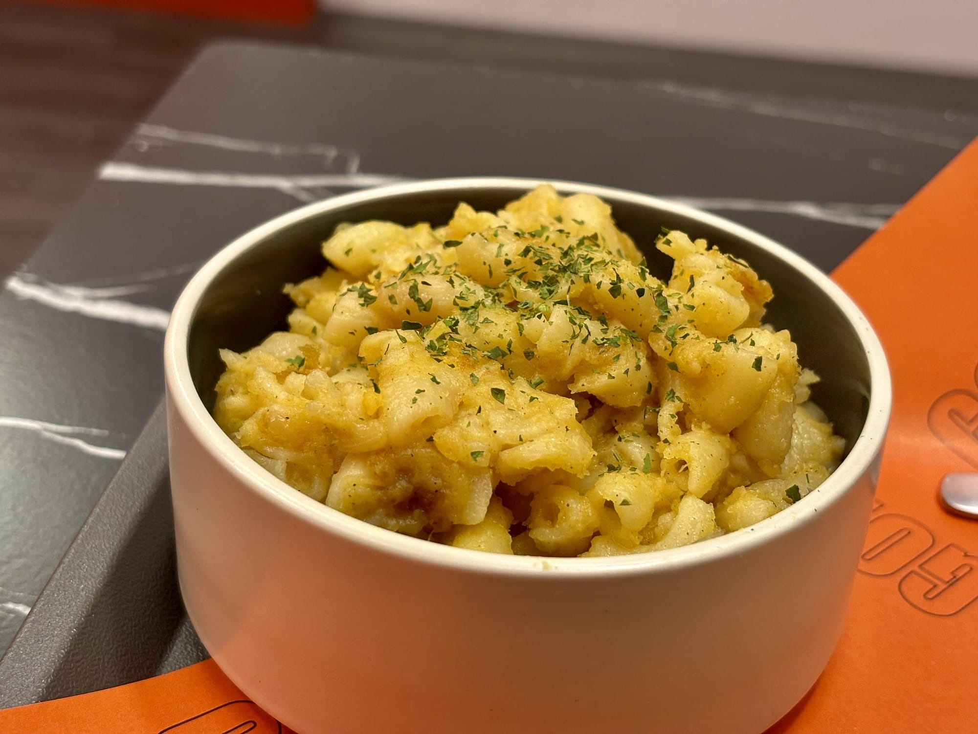 這道配餐讓我眼睛一亮。不同於一般漢堡店常見的炸薯條,但這裡附上的卻是馬鈴薯通心粉。 通心粉煮得軟硬適中,裹著綿密的馬鈴薯泥與特製醬料,吃起來有一種家庭料理的溫馨感。它的調味比想像中清爽,帶點奶香卻不膩口。在重口味的熱狗堡之後吃上一口,那種溫柔的澱粉香氣,意外地療癒。