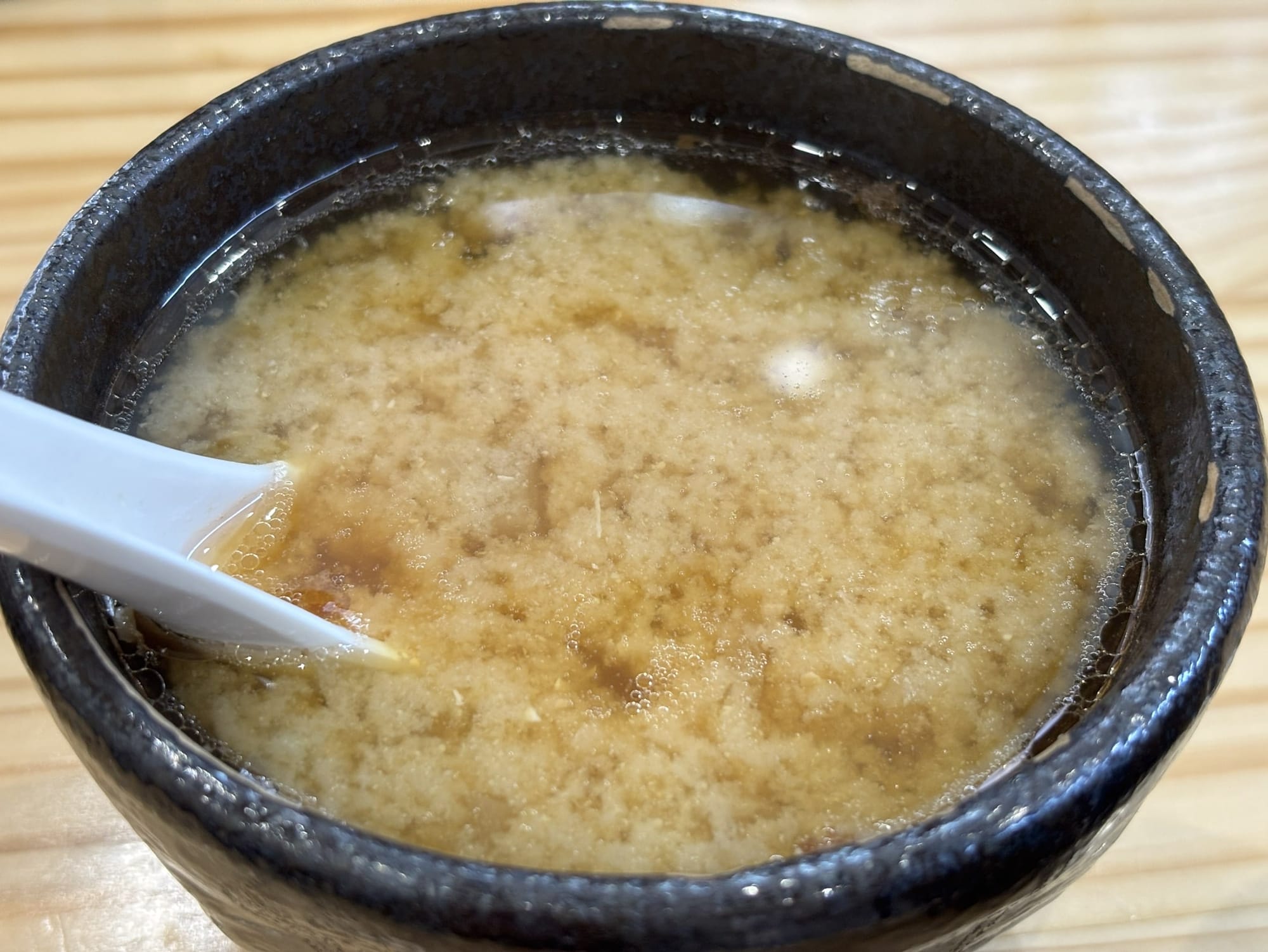 最讓我驚喜的是那顆隨餐附上的溫泉蛋。當劃破蛋黃,金黃色的蛋液緩緩流下,包裹住魚肉丁與點綴其中的蝦卵、玉子燒切丁,原本清爽的鮮味瞬間多了一層溫潤濃郁的口感。每一口都能吃到不同魚肉的彈性與蝦卵的微脆,混著蔥花的清香與蛋液的滑順,這種豐富且多層次的食感,就像在嘴裡開了一場熱鬧的小派對,讓人忍不住一口接一口地扒飯。