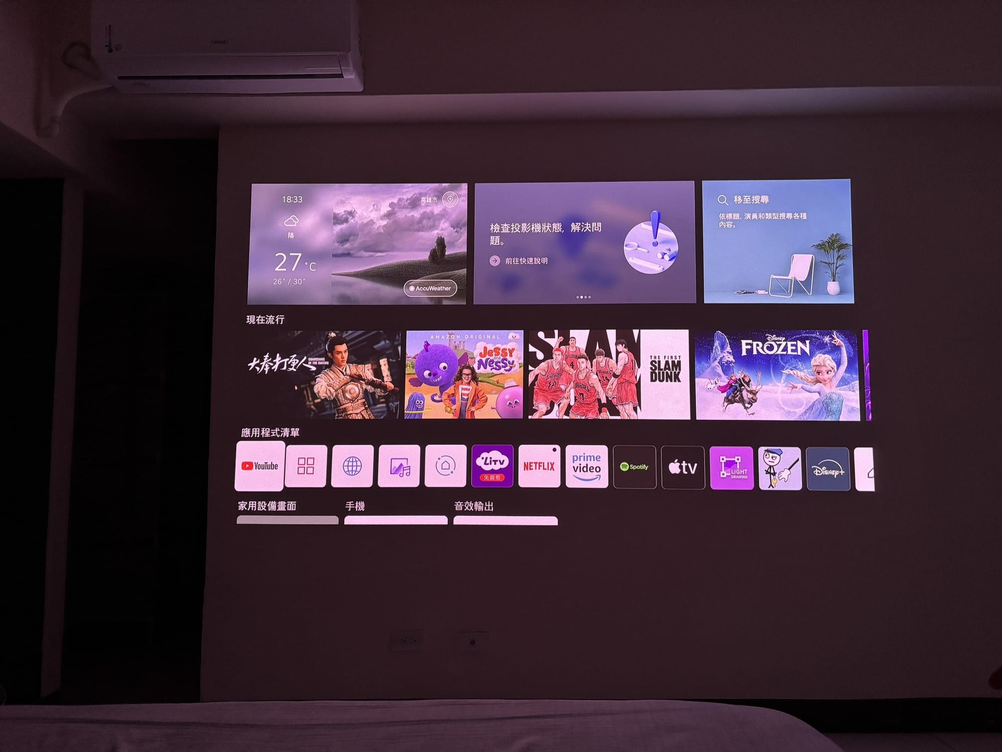 在畫質方面,我認為非常令人滿意。亮度雖然不及電視那麼鮮明,但在臥室這樣的低光源環境中使用,反而營造出一種專屬小劇院的沉浸感,非常有氣氛。