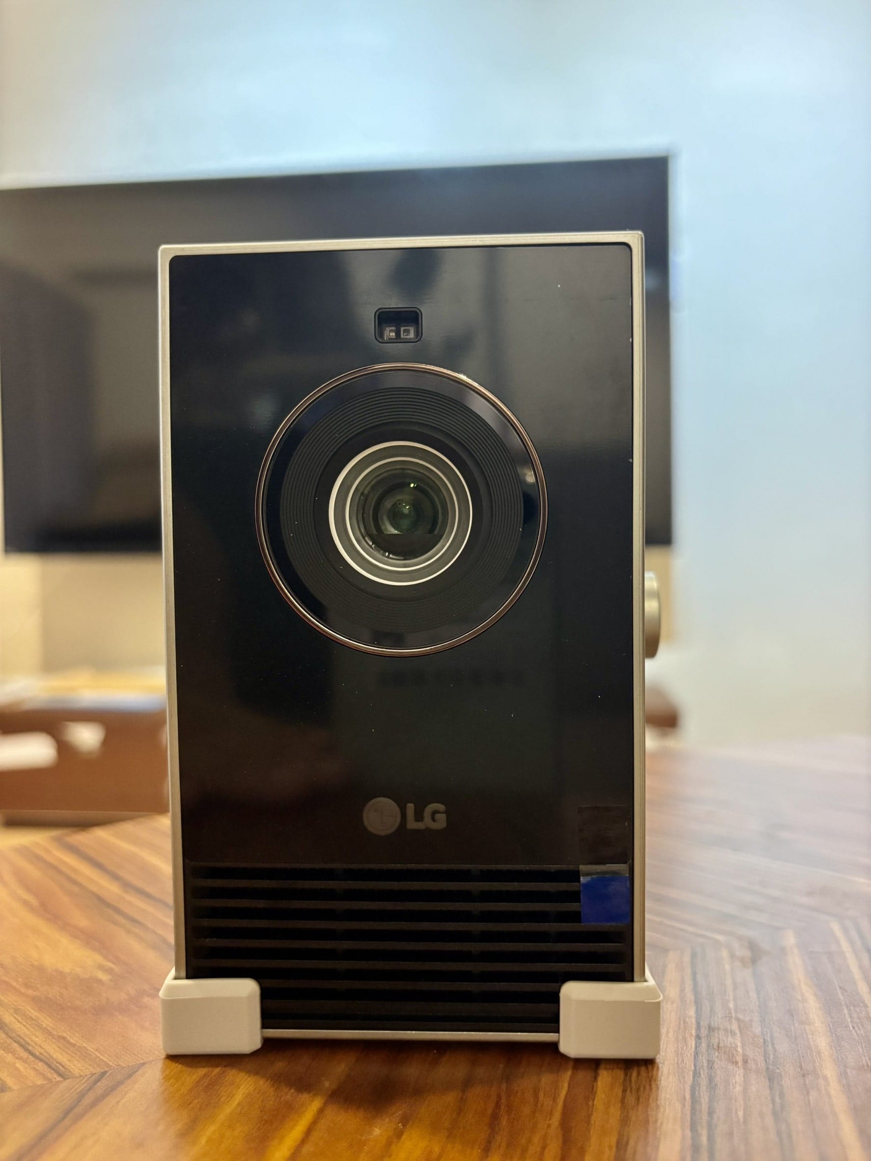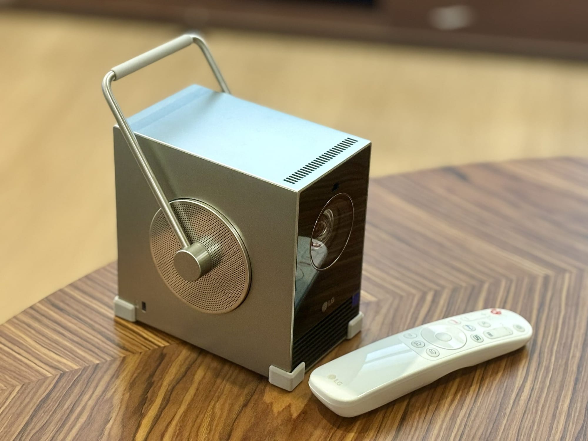 綜合這些需求,最終我選擇了 LG CineBeam Q。除了上述功能它全數具備,最讓我心動的其實是它的外型設計。俐落方正的造型搭配金屬霧面質感外殼,完全跳脫過去對塑膠投影機的刻板印象。不只好看,它的360度旋轉把手也非常實用,穩固紮實,用來當作支架調整角度時完全不用擔心鬆動。