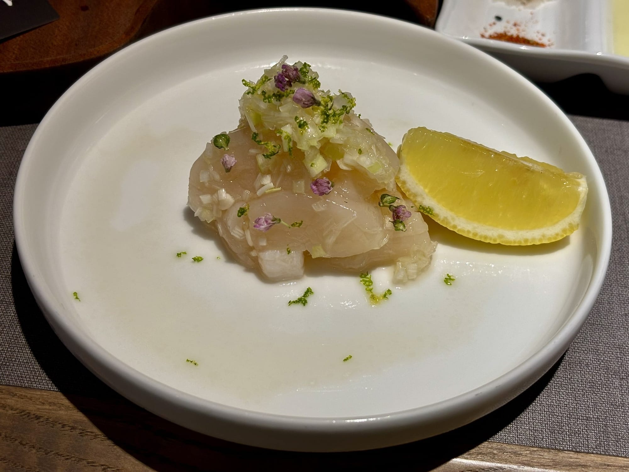 這是一道充滿海洋氣息的開胃小品。生食級干貝的鮮甜與滑嫩,在口中溫柔地化開,搭配日式蔥鹽的鹹香提味,再擠上幾滴新鮮檸檬汁,那一抹清新的酸,瞬間喚醒了所有味蕾。